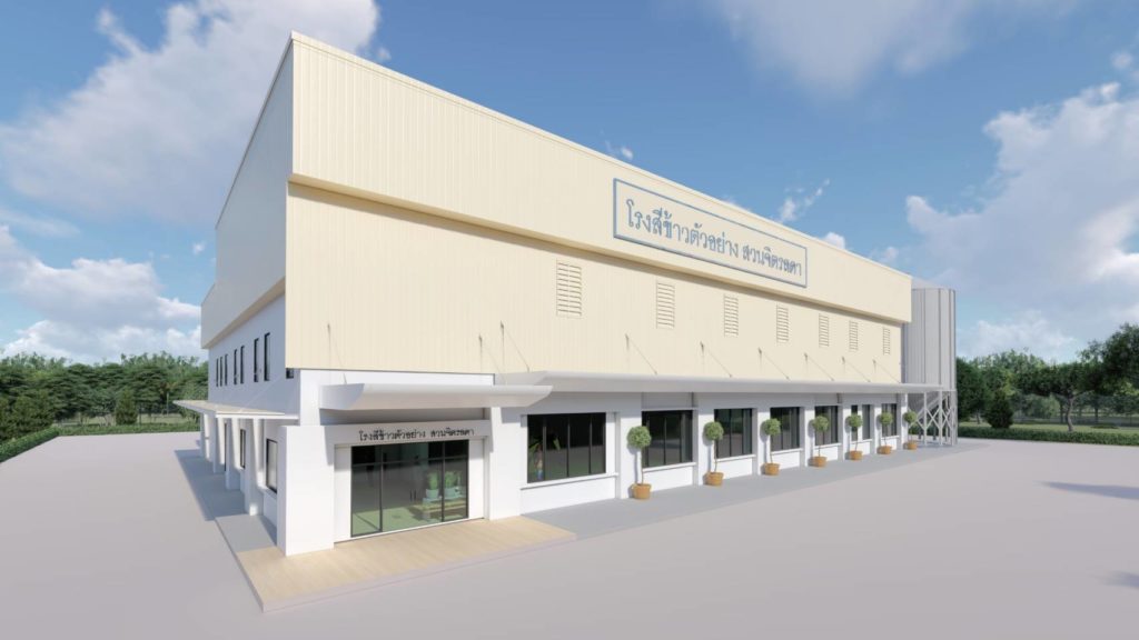 พระบาทสมเด็จพระบรมชนกาธิเบศร มหาภูมิพลอดุลยเดชมหาราช บรมนาถบพิตร โปรดเกล้าฯ ให้สร้างโรงสีข้าวตัวอย่าง สวนจิตรลดา ขึ้นในปีพุทธศักราช 2514 เพื่อศึกษาข้อมูลต่างๆ เกี่ยวกับการเก็บรักษาข้าวและการสีข้าวให้ได้ผลดี ปีพุทธศักราช 2562 มูลนิธิเจริญโภคภัณฑ์ น้อมเกล้าฯ ถวายการก่อสร้างอาคารโรงสีข้าวตัวอย่างแห่งใหม่ โดยการออกแบบโรงสีข้าวตัวอย่างนี้ เป็นไปตามมาตรฐานการผลิตของระบบ GMP เพื่อเป็นการสาธิตการผลิต ผลิตภัณฑ์จากข้าวให้ได้มาตรฐานที่ดีมีการจัดการอย่างเป็นระบบ โดยมีเทคโนโลยีที่ทันสมัย ไม่ก่อให้เกิดมลภาวะ