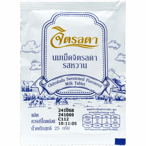 นมปรุงแต่งชนิดเม็ด รสหวาน ขนาด 25 กรัม